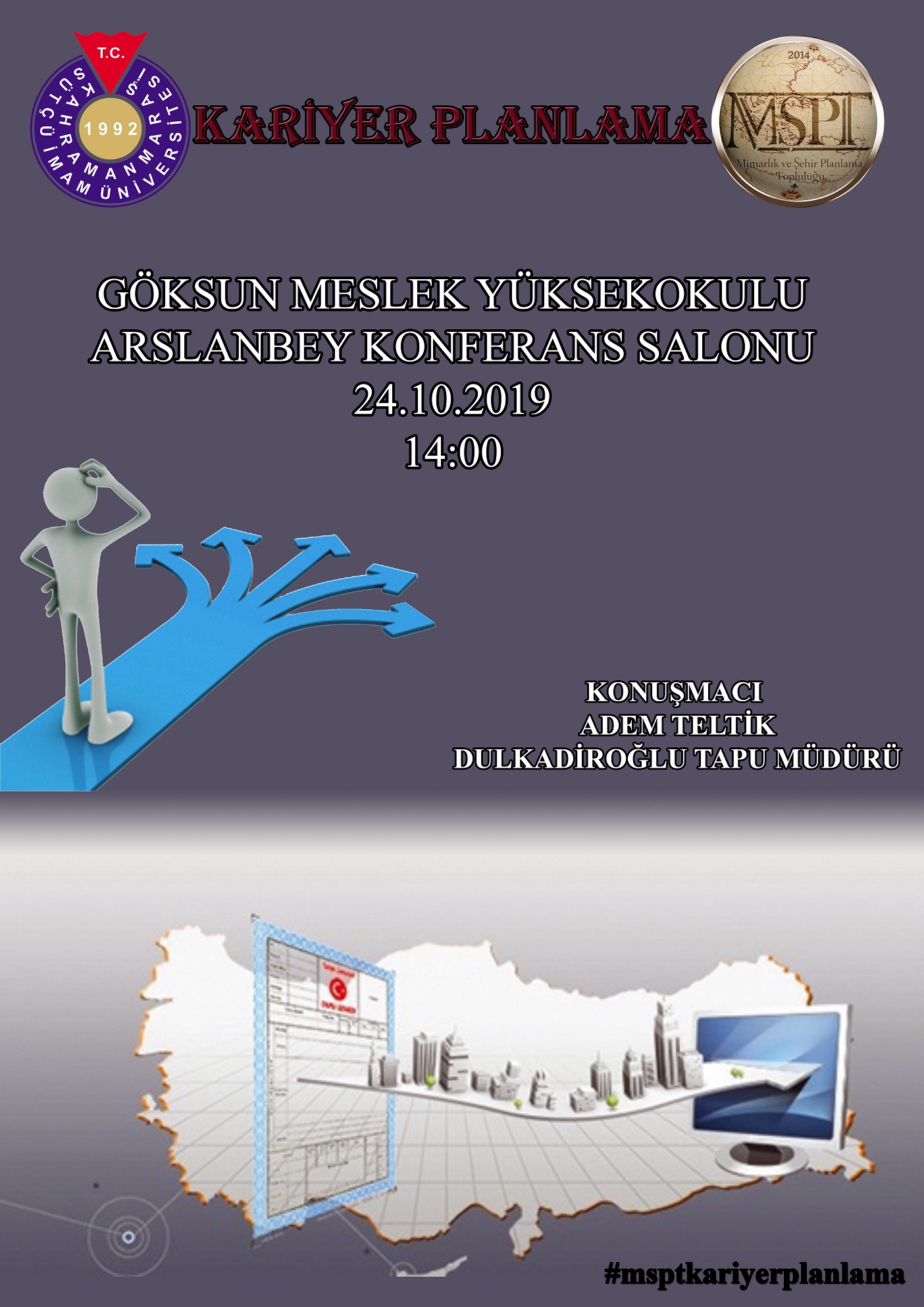 Tapu Kadastro programının amacı özellikle tapu sicillerinin tutulmasına ilişkin temel kurallar ile tapu sicilinin oluşturulmasını amaçlayan kadastro çalışmaları konusunda çalışacak ara insan gücünü yetiştirmektir. Tapu Kadastro programında dört dönemlik öğretim süresinde Mesleki Matematik, Ölçme Bilgisi, Kadastro, Bilgisayar Destekli Harita Çizimi, Coğrafi Bilgi Sistemleri, Uzaktan Algılama, İmar, Kartoğrafya, GPS ve Ölçüm Teknikleri, Arazi Yönetimi ve Planlaması, İş sağlığı ve Güvenliği, Kamulaştırma, Arazi Toplulaştırma gibi teknik derslerin yanı sıra hukuk dersleri (Medeni Hukuk, Borçlar Hukuku, Eşya Hukuku, Miras Hukuku) ile Tapu Sicil Uygulaması, Tapu Mevzuatı, Şehircilik ve Planlama dersleri okutulur. Ayrıca son dönemde Tapu Müdürlüklerinde staj uygulaması yapılmaktadır. Tapu Kadastro programından mezun olanlara “Tapu Kadastro Teknikeri" unvanı verilmektedir. Tapu ve Kadastro Teknikeri; Tapu ve Kadastro Genel Müdürlüğü ve taşra teşkilatında, Bayındırlık ve İskan, Enerji ve Tabii Kaynaklar, Turizm Bakanlıklarında, İller Bankası, Devlet Su İşleri, Karayolları Genel Müdürlüğü, Türkiye Petrolleri Anonim Ortaklığı, Köy Hizmetleri Genel Müdürlüğü ve taşra teşkilatında, Maden Tetkik Arama Enstitüsü ve belediyeler gibi kamu kuruluşları ile harita, parselasyon, imar planı, yol, baraj gibi hizmetler yapan müteahhit firma ve şirketlerde görev alabilirler. Eğitim süresi 2 yıldır. Çalışma Ortamı ve Koşullar: Yerleşim bölgelerinde, tarım ve orman alanlarında bireylere veya kurumlara ait taşınmaz malın alanını ölçer...